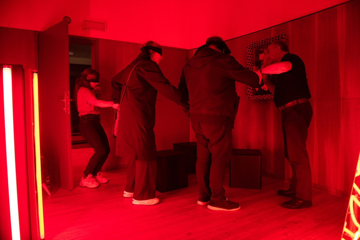 Fotoreportage door ©GianninaUrdoormenetaOttiker: Preview van de podcast als intieme theatervoorstelling op het Kiem-festival: De bezoeker luistert geblinddoekt naar de eerste zes minuten van de podcast, als hij zijn blinddoek afzet, bevindt hij zich in het Lilian-eum.