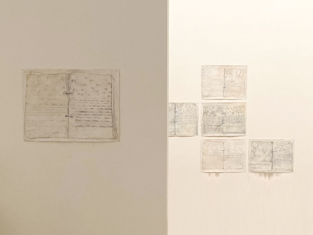 Hoe maak ik een zelf-portret als ik mezelf niet ken? Om mezelf beter te begrijpen, dook ik als archeoloog in mijn eigen leven en hertekende ik de pagina’s van mijn eerste schriftje. Als kleuter-analfabeet ben je nog heel sterk je authentieke zelf, maar daarna word je gevormd, leer je tussen twee lijntjes letters te tekenen. Door me te verplaatsen in mijn oude“ik”, herken ik mijn nog niet geknede DNA dat me tot op vandaag typeert. Ik herbeleef mijn onhandige, dromerige eerste stapjes in de wereld van het schrift.